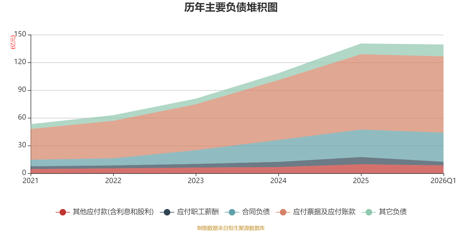 负债重大变化方面,截至2026年一季度末,公司应付职工薪酬较上年末减少48.1%,占公司总资产比重下降1.26个百分点;短期借款较上年末增加68.15%,占公司总资产比重上升0.79个百分点;应交税费较上年末减少46.47%,占公司总资产比重下降0.63个百分点;其他应付款(含利息和股利)较上年末减少13.46%,占公司总资产比重下降0.49个百分点。