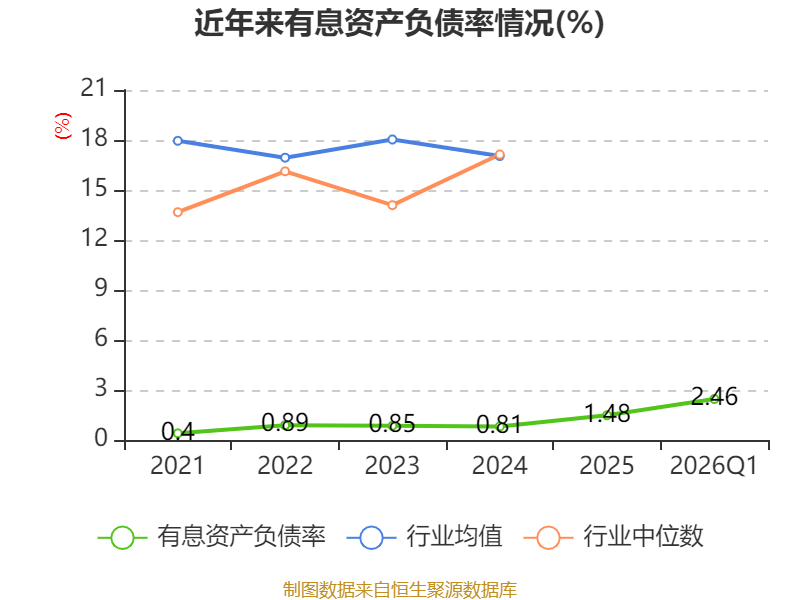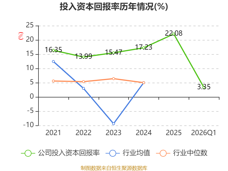 盈利能力方面, 2026年一季度公司加权平均净资产收益率为3.48%,同比上升0.02个百分点。公司2026年第一季度投入资本回报率为3.35%,较上年同期下降0.08个百分点。