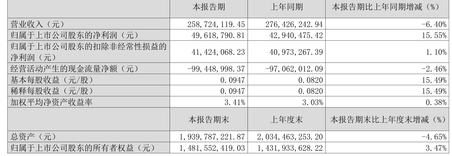 中证智能财讯东港股份(002117)4月25日披露2026年第一季度报告。公司实现营业总收入2.59亿元,同比下降6.40%;归母净利润4961.88万元,同比增长15.55%;扣非净利润4142.41万元,同比增长1.10%;经营活动产生的现金流量净额为-9944.9万元,上年同期为-9706.2万元;报告期内,东港股份基本每股收益为0.0947元,加权平均净资产收益率为3.41%。