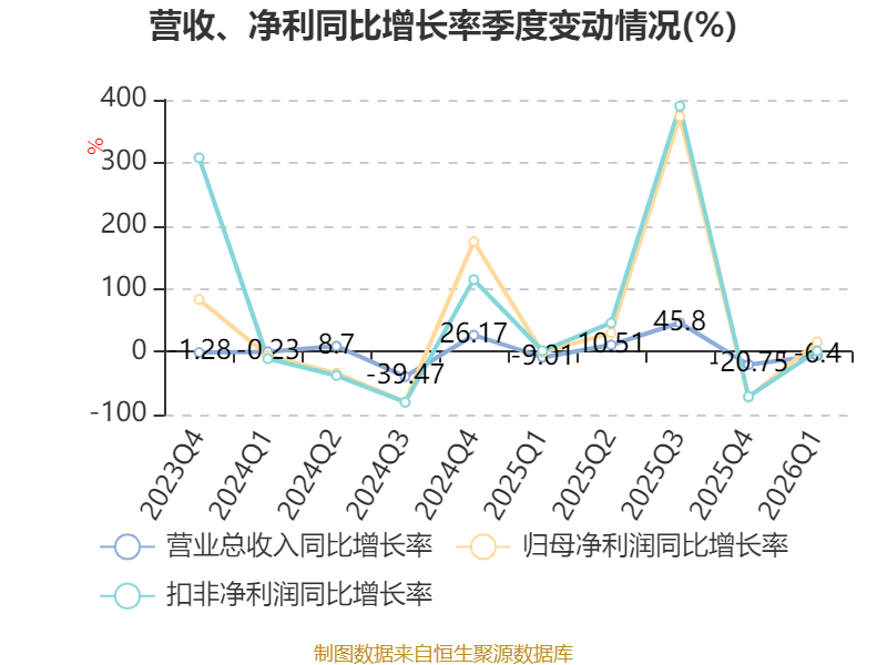 资产重大变化方面,截至2026年一季度末,公司货币资金较上年末减少47.03%,占公司总资产比重下降7.12个百分点;交易性金融资产合计较上年末增加15.37%,占公司总资产比重上升4.23个百分点;存货较上年末减少16.12%,占公司总资产比重下降0.92个百分点;其他应收款(含利息和股利)较上年末增加59.66%,占公司总资产比重上升0.68个百分点。