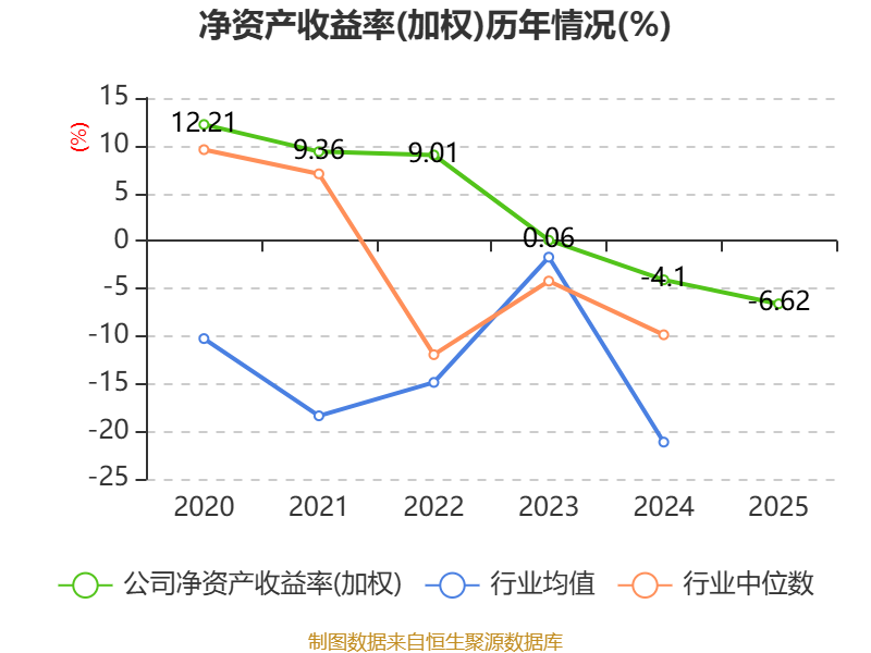 数据显示,2025年公司加权平均净资产收益率为-6.62%,较上年同期下降2.52个百分点。公司2025年投入资本回报率为-6.66%,较上年同期下降2.26个百分点。