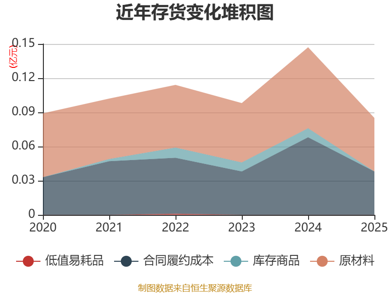 从存货变动来看,截至2025年末,公司存货账面价值为844.39万元,占净资产的0.69%,较上年末减少629.18万元。公司本期没有计提存货跌价准备。