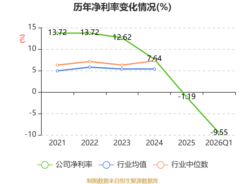 盈利能力方面, 2026年一季度公司加权平均净资产收益率为-1.74%,同比下降2.66个百分点。公司2026年第一季度投入资本回报率为-1.27%,较上年同期下降1.96个百分点。