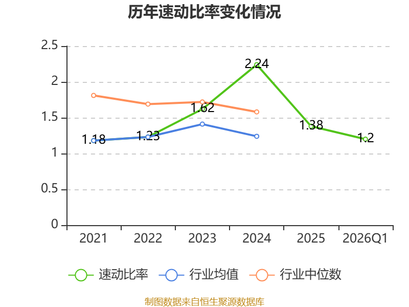 2026年第一季度,公司流动比率为1.64,速动比率为1.2。