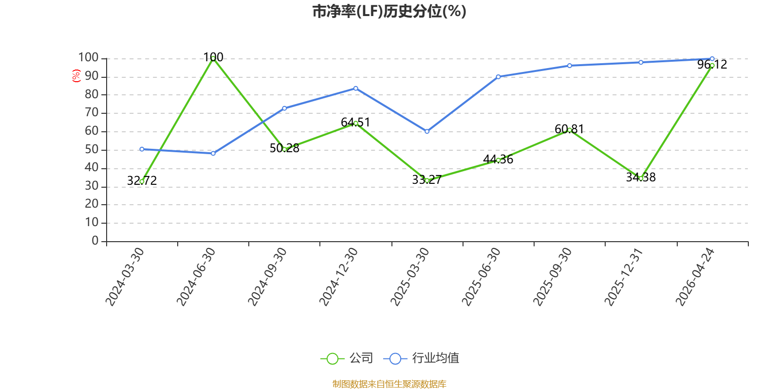 市盈率、市净率为负时,不显示当期分位数,会导致折线图中断。