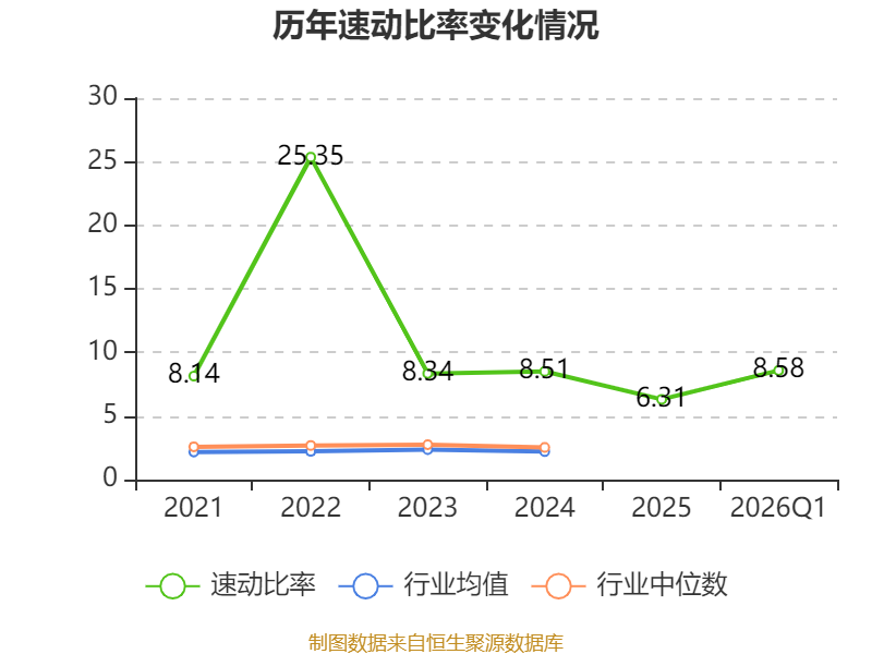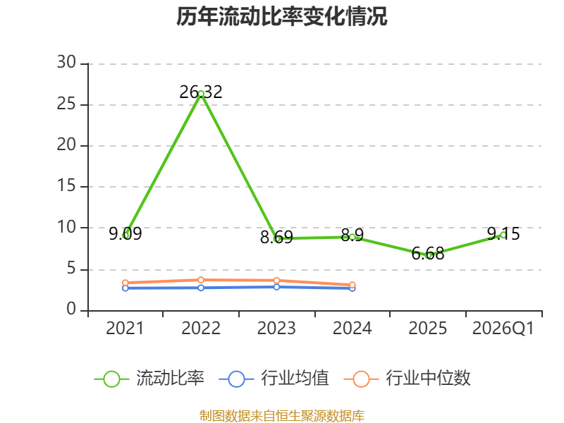 2026年第一季度,公司流动比率为9.15,速动比率为8.58。
