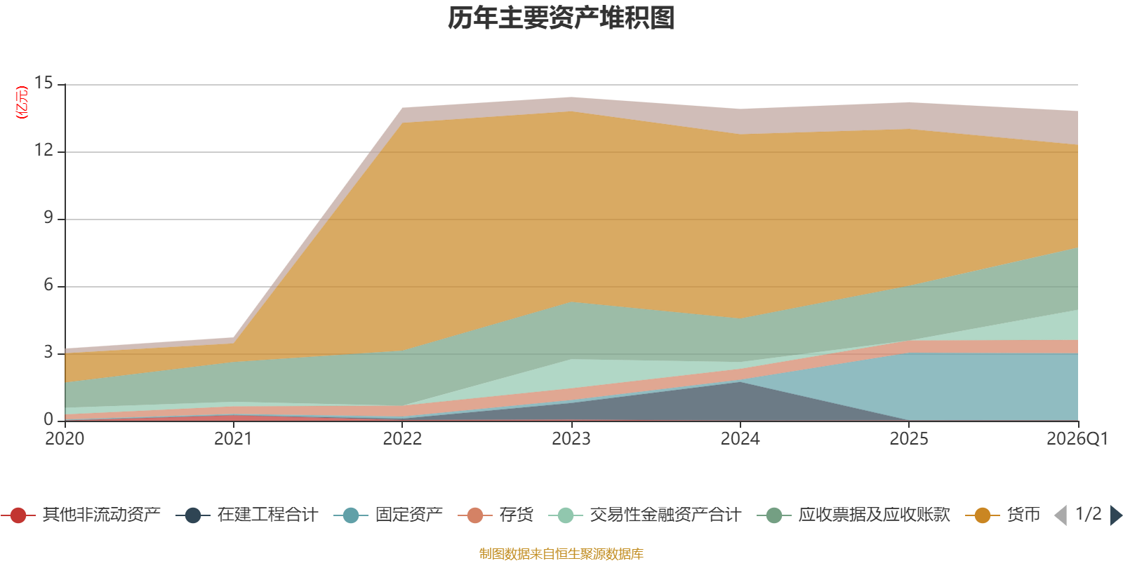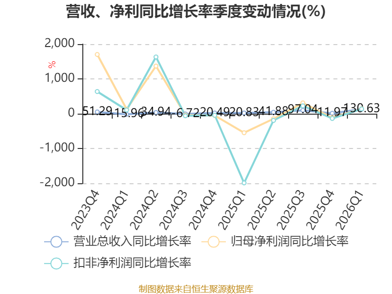 资产重大变化方面,截至2026年一季度末,公司货币资金较上年末减少34.52%,占公司总资产比重下降16.08个百分点;交易性金融资产合计占公司总资产的9.79%,上年末为0;应收票据及应收账款较上年末增加13.86%,占公司总资产比重上升2.94个百分点;其他权益工具投资占公司总资产的1.81%,上年末为0。