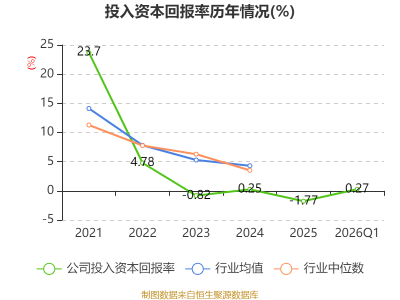 盈利能力方面, 2026年一季度公司加权平均净资产收益率为0.41%,同比上升1.4个百分点。公司2026年第一季度投入资本回报率为0.27%,较上年同期上升1.59个百分点。