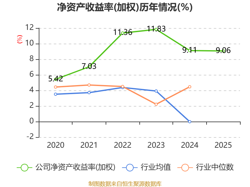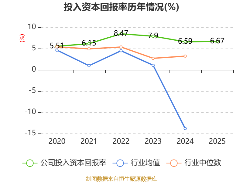 数据显示,2025年公司加权平均净资产收益率为9.06%,较上年同期下降0.05个百分点。公司2025年投入资本回报率为6.67%,较上年同期上升0.08个百分点。