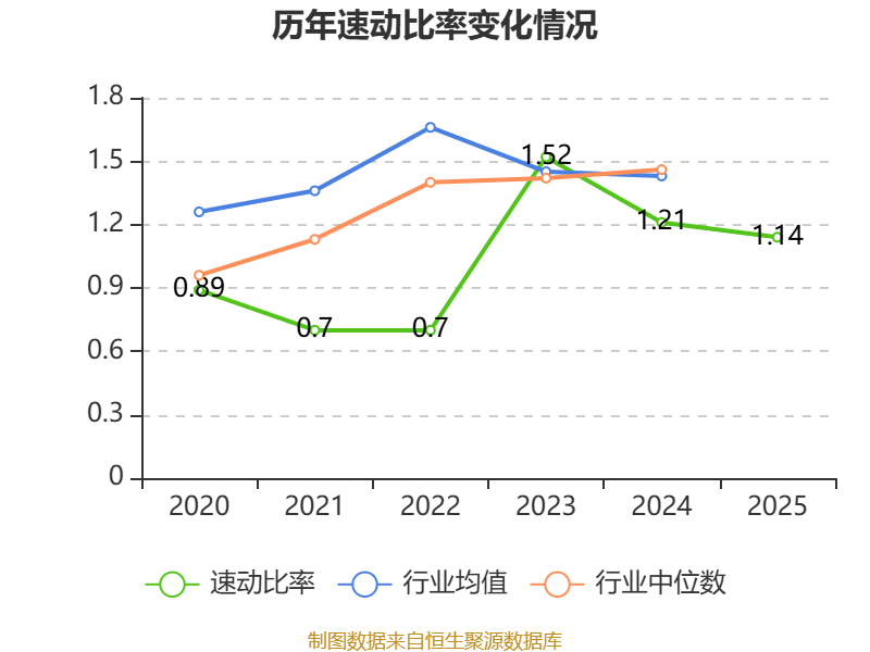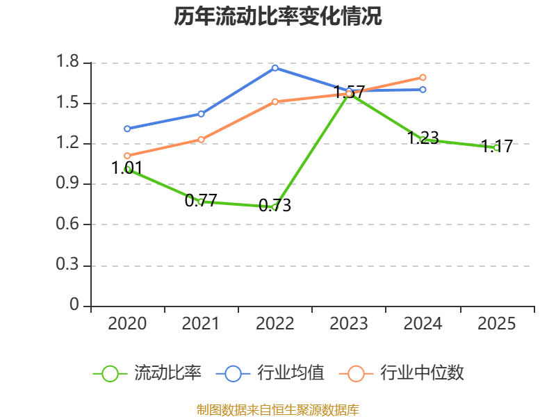 2025年,公司流动比率为1.17,速动比率为1.14。
