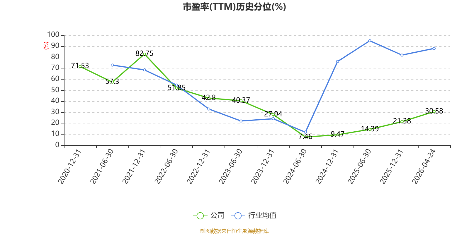 市盈率、市净率为负时,不显示当期分位数,会导致折线图中断。