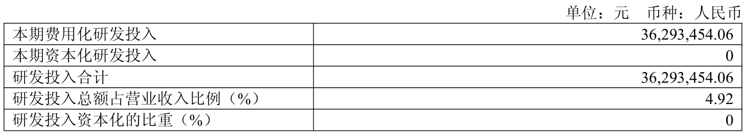 2025年全年,公司研发投入金额为3629.35万元,同比增长11.01%;研发投入占营业收入比例为4.92%,相比上年同期上升0.17个百分点。此外,公司全年研发投入资本化率为0%。