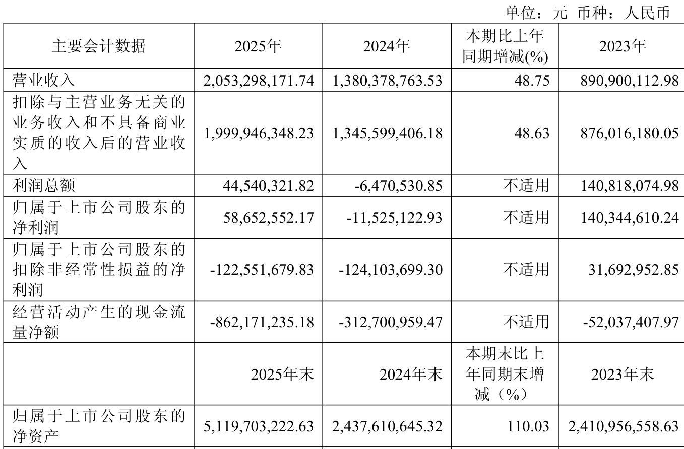 中证智能财讯中科飞测(688361)4月25日披露2025年年度报告。2025年,公司实现营业总收入20.53亿元,同比增长48.75%;归母净利润5865.26万元,同比扭亏;扣非净利润亏损1.23亿元,上年同期亏损1.24亿元;经营活动产生的现金流量净额为-8.62亿元,上年同期为-3.13亿元;报告期内,中科飞测基本每股收益为0.18元,加权平均净资产收益率为1.99%。