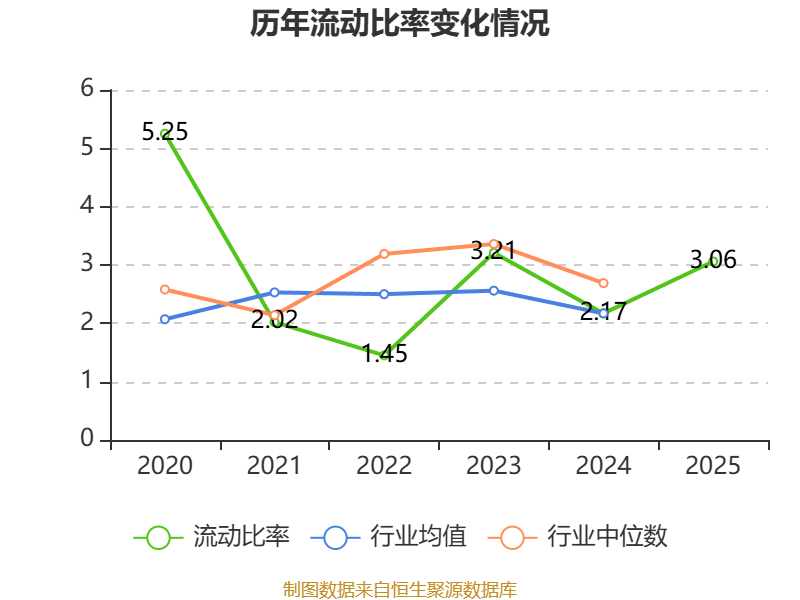 2025年,公司流动比率为3.06,速动比率为1.79。