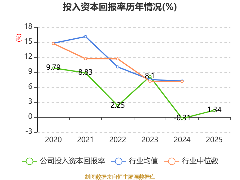 数据显示,2025年公司加权平均净资产收益率为1.99%,较上年同期上升2.47个百分点。公司2025年投入资本回报率为1.34%,较上年同期上升1.65个百分点。