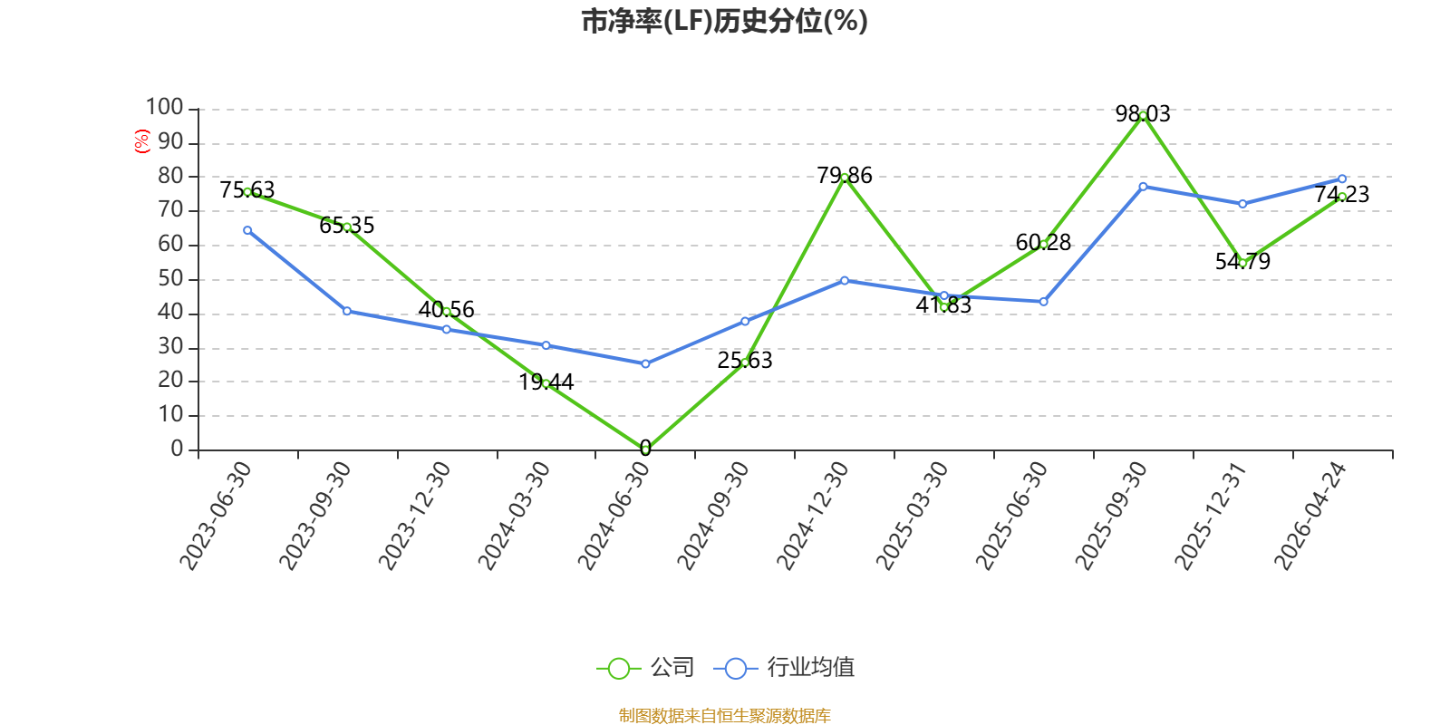 市盈率、市净率为负时,不显示当期分位数,会导致折线图中断。