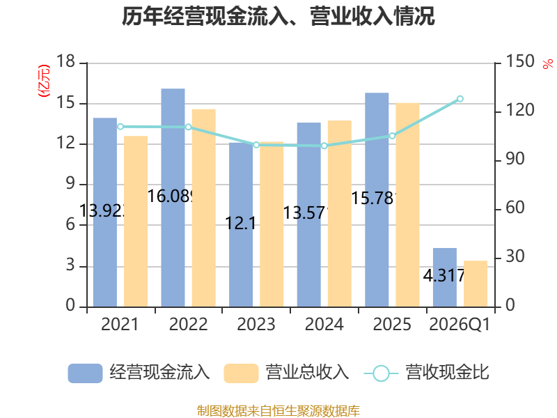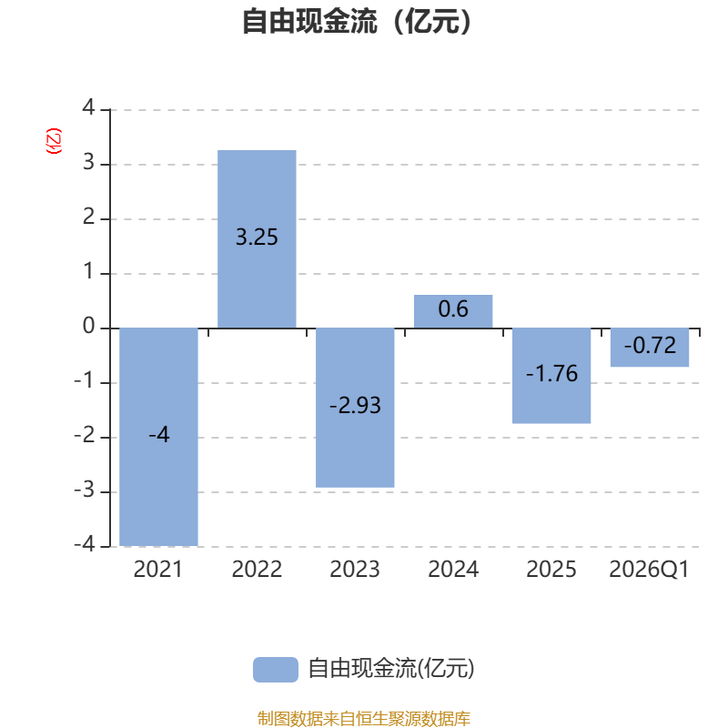 截至2026年一季度末,公司经营活动现金流净额为-2617.9万元,同比减少69.92万元;筹资活动现金流净额-1.75亿元,同比减少2.01亿元;投资活动现金流净额9873.45万元,上年同期为6464.56万元。