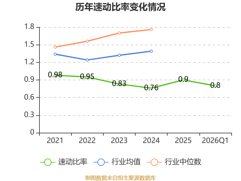 2026年第一季度,公司流动比率为1.45,速动比率为0.8。