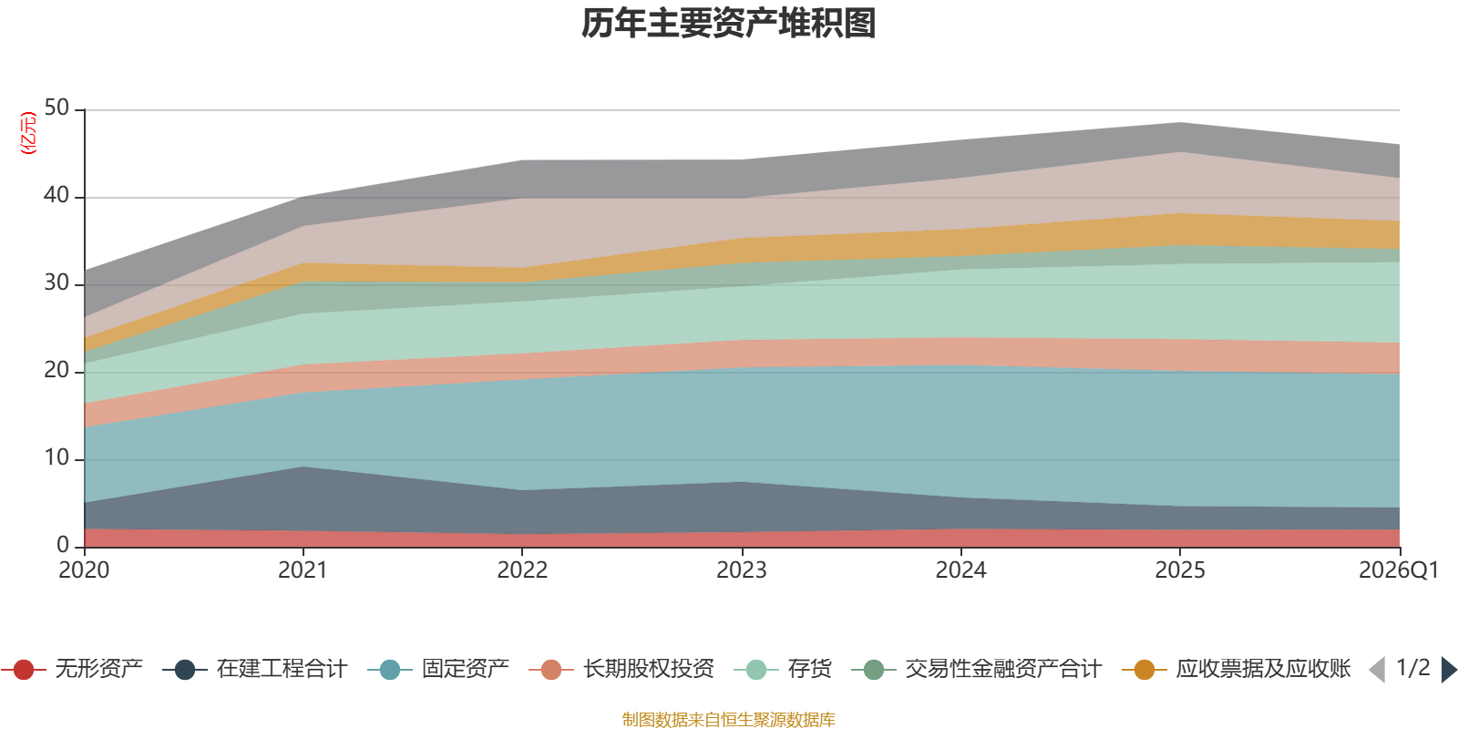 资产重大变化方面,截至2026年一季度末,公司货币资金较上年末减少30.05%,占公司总资产比重下降3.79个百分点;存货较上年末增加7.23%,占公司总资产比重上升2.33个百分点;固定资产较上年末减少1.54%,占公司总资产比重上升1.25个百分点;交易性金融资产合计较上年末减少30.5%,占公司总资产比重下降1.19个百分点。
