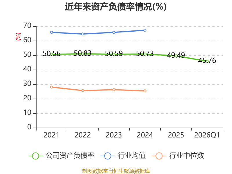 负债重大变化方面,截至2026年一季度末,公司长期借款较上年末减少76.09%,占公司总资产比重下降2.83个百分点;短期借款较上年末减少13.79%,占公司总资产比重下降1.3个百分点;一年内到期的非流动负债较上年末增加29.51%,占公司总资产比重上升0.87个百分点;合同负债较上年末减少29.12%,占公司总资产比重下降0.76个百分点。