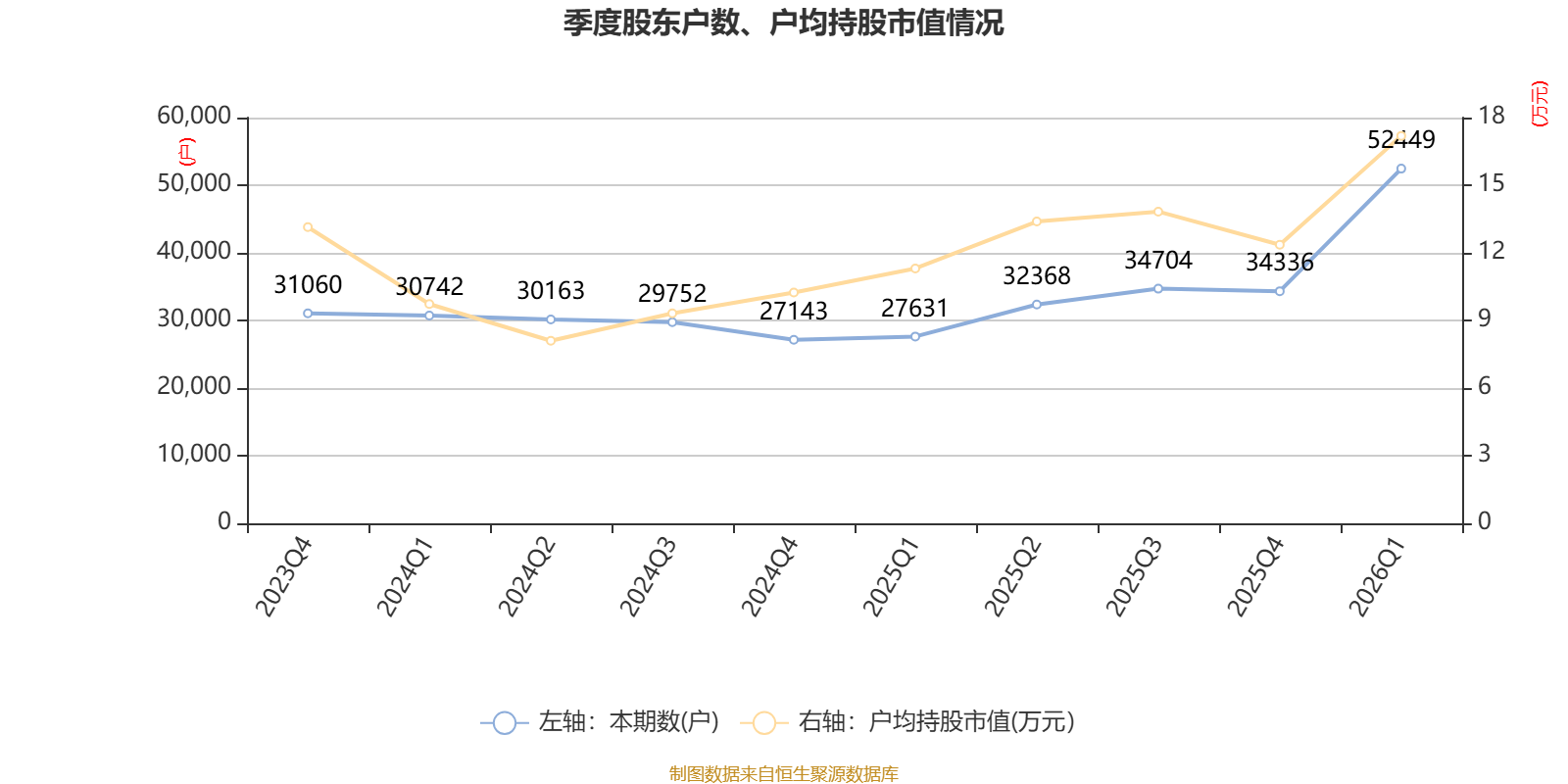 一季报显示,2026年一季度末的公司十大流通股东中,新进股东为於奇、J.P.Morgan Securities PLC-自有资金、翟伟、高盛公司有限责任公司、MERRILL LYNCH INTERNATIONAL、戴子钧,取代了上年末的李雪红、石建祥、舒夏君、李培芬、李光轩、陈小燕。在具体持股比例上,宁波美诺华控股集团有限公司、姚成志、香港中央结算有限公司、杜广娣持股有所上升。