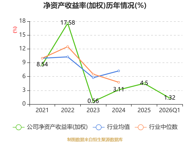 盈利能力方面, 2026年一季度公司加权平均净资产收益率为1.32%,同比上升0.36个百分点。公司2026年第一季度投入资本回报率为0.98%,较上年同期上升0.24个百分点。