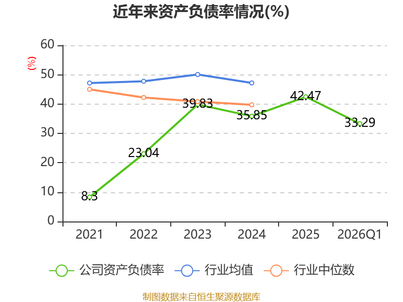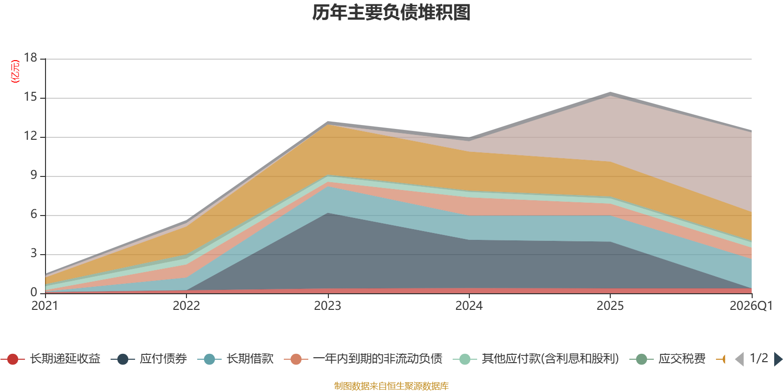 负债重大变化方面,截至2026年一季度末,公司应付债券较上年末减少100%,占公司总资产比重下降9.85个百分点;短期借款较上年末增加20.89%,占公司总资产比重上升2.39个百分点;应付票据及应付账款较上年末减少17.5%,占公司总资产比重下降1.47个百分点;长期借款较上年末增加12.65%,占公司总资产比重上升0.51个百分点。