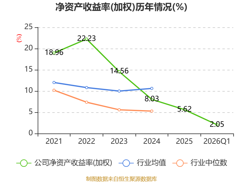 盈利能力方面, 2026年一季度公司加权平均净资产收益率为2.05%,同比上升1.44个百分点。公司2026年第一季度投入资本回报率为1.55%,较上年同期上升0.72个百分点。