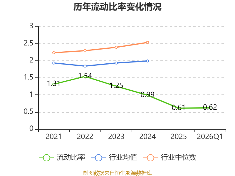 2026年第一季度,公司流动比率为0.62,速动比率为0.46。