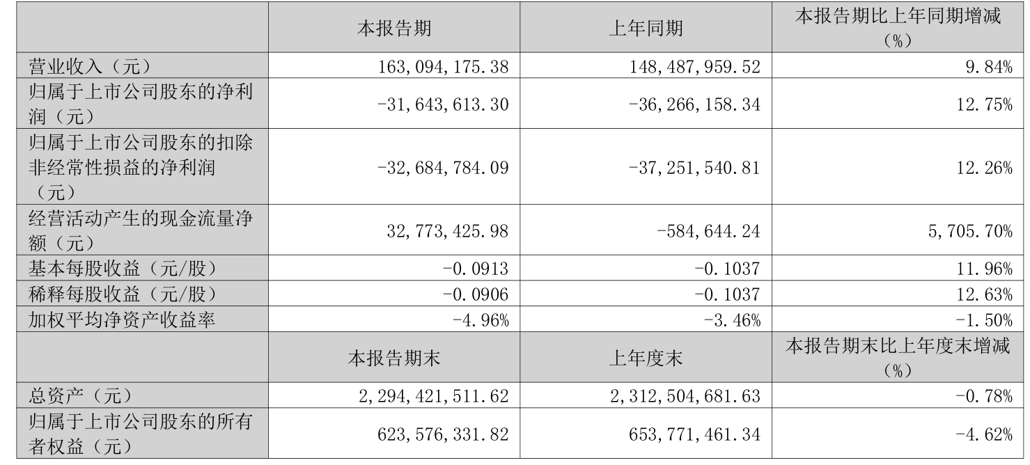 中证智能财讯广济药业(000952)4月25日披露2026年第一季度报告。公司实现营业总收入1.63亿元,同比增长9.84%;归母净利润亏损3164.36万元,上年同期亏损3626.62万元;扣非净利润亏损3268.48万元,上年同期亏损3725.15万元;经营活动产生的现金流量净额为3277.34万元,上年同期为-58.46万元;报告期内,广济药业基本每股收益为-0.0913元,加权平均净资产收益率为-4.96%。