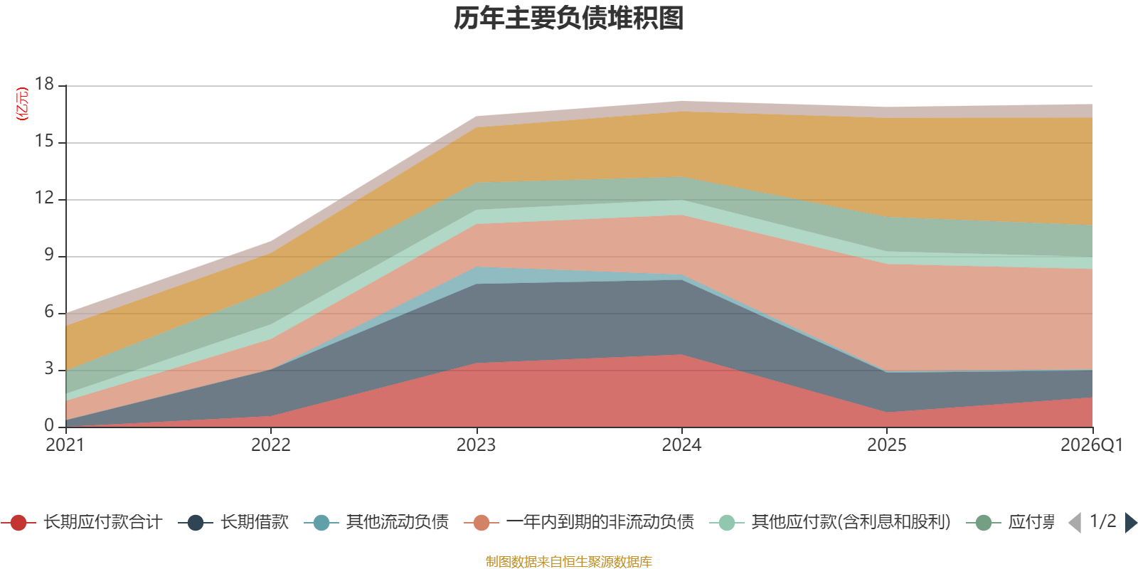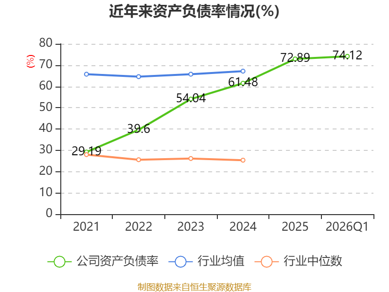 负债重大变化方面,截至2026年一季度末,公司长期应付款合计较上年末增加103.24%,占公司总资产比重上升3.45个百分点;长期借款较上年末减少32.17%,占公司总资产比重下降2.86个百分点;短期借款较上年末增加8.66%,占公司总资产比重上升2.15个百分点;一年内到期的非流动负债较上年末减少6.47%,占公司总资产比重下降1.4个百分点。