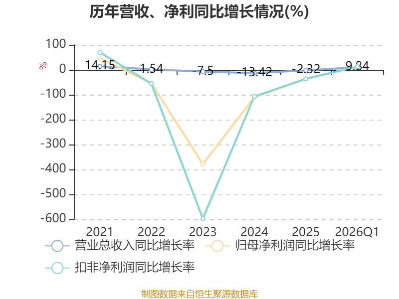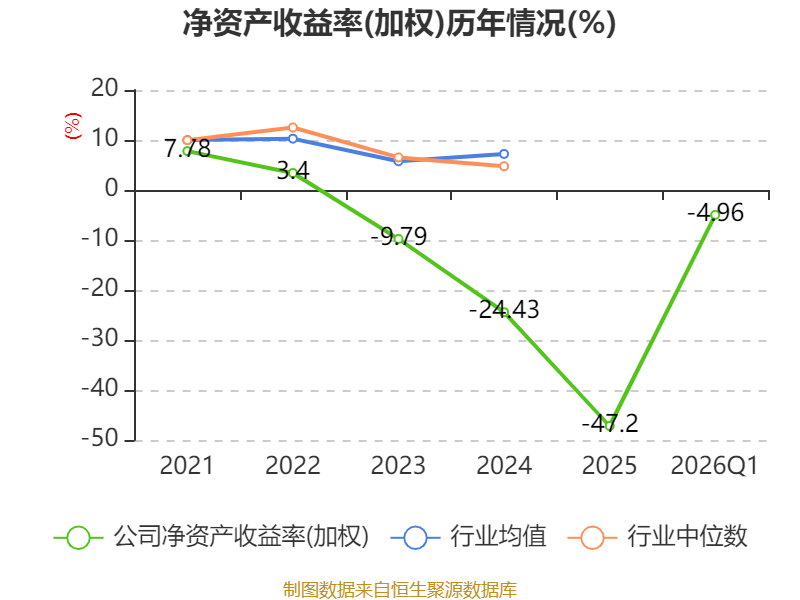 盈利能力方面, 2026年一季度公司加权平均净资产收益率为-4.96%,同比下降1.5个百分点。公司2026年第一季度投入资本回报率为-1.22%,较上年同期上升0.2个百分点。