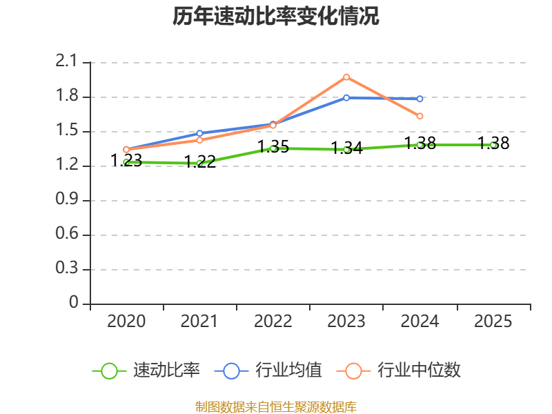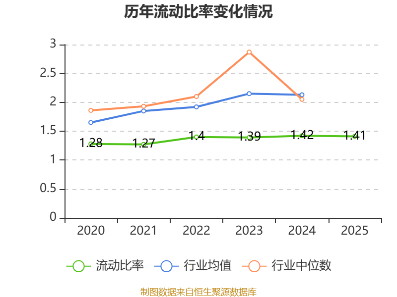 2025年,公司流动比率为1.41,速动比率为1.38。