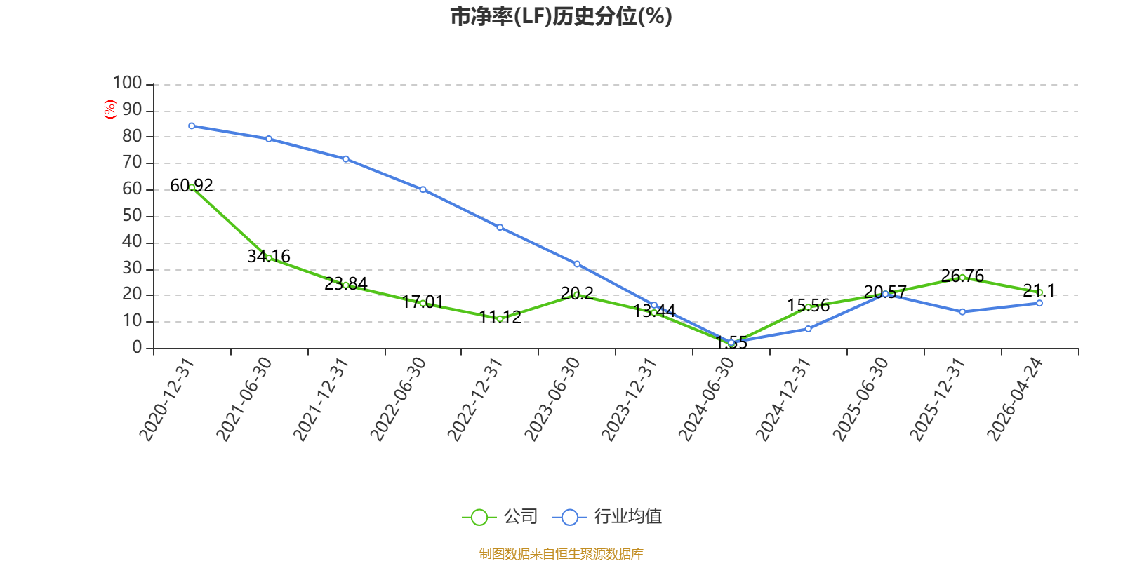 市盈率、市净率为负时,不显示当期分位数,会导致折线图中断。