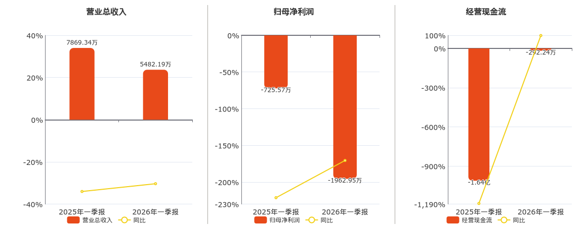 公司截至2026年3月31日,*ST中基营业总收入为5482.19万元,较去年同报告期营业总收入减少2387.16万元,同比较去年同期下降30.33%。截至2026年3月31日,*ST中基归母净利润为-1962.95万元,较去年同报告期归母净利润减少1237.38万元。截至2026年3月31日,*ST中基经营活动现金净流入为-292.24万元,较去年同报告期经营活动现金净流入增加1.61亿元。