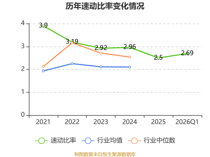 2026年第一季度,公司流动比率为3.23,速动比率为2.69。