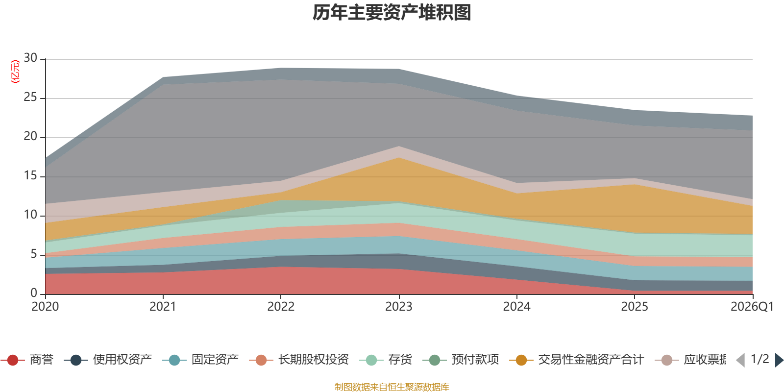 资产重大变化方面,截至2026年一季度末,公司交易性金融资产合计较上年末减少41.78%,占公司总资产比重下降10.51个百分点;货币资金较上年末增加30.49%,占公司总资产比重上升9.89个百分点;应收票据及应收账款较上年末增加9.57%,占公司总资产比重上升0.43个百分点;其他流动资产较上年末减少31.51%,占公司总资产比重下降0.31个百分点。