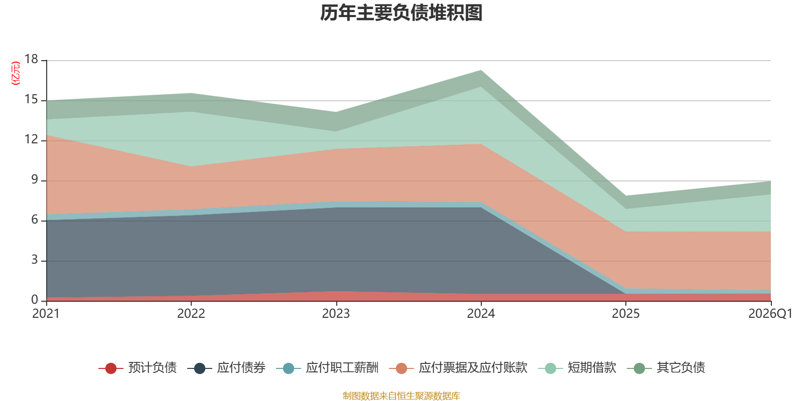 负债重大变化方面,截至2026年一季度末,公司短期借款较上年末增加63.42%,占公司总资产比重上升2.56个百分点;应付职工薪酬较上年末减少39.26%,占公司总资产比重下降0.51个百分点;应付票据及应付账款较上年末增加4.2%,占公司总资产比重下降0.2个百分点;其他应付款(含利息和股利)较上年末减少6.26%,占公司总资产比重下降0.11个百分点。