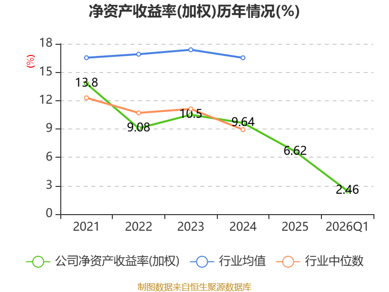 盈利能力方面, 2026年一季度公司加权平均净资产收益率为2.46%,同比上升0.3个百分点。公司2026年第一季度投入资本回报率为2.18%,较上年同期上升0.55个百分点。