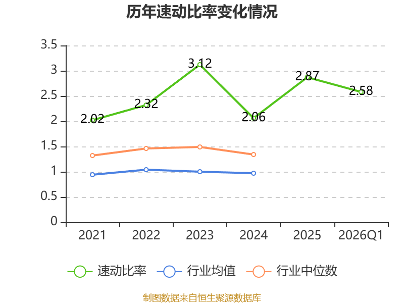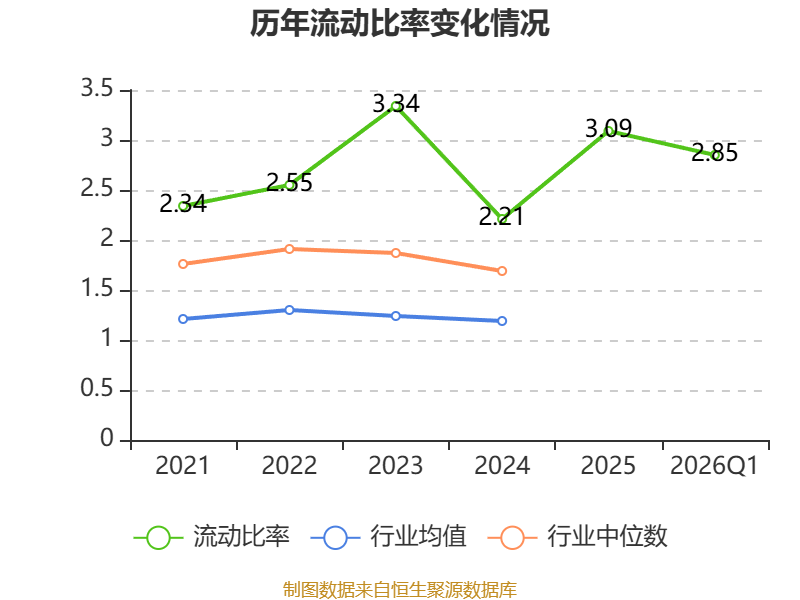 2026年第一季度,公司流动比率为2.85,速动比率为2.58。