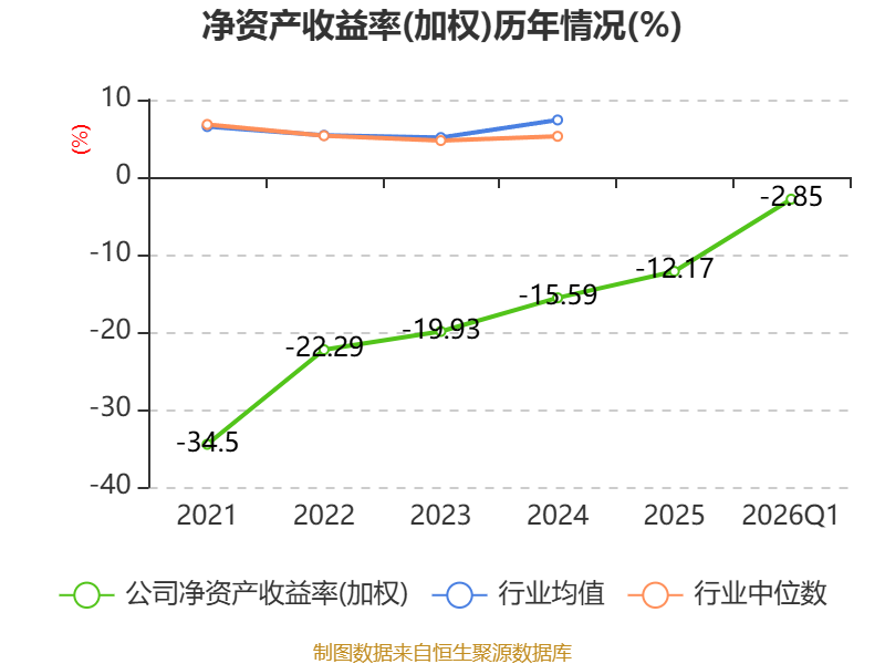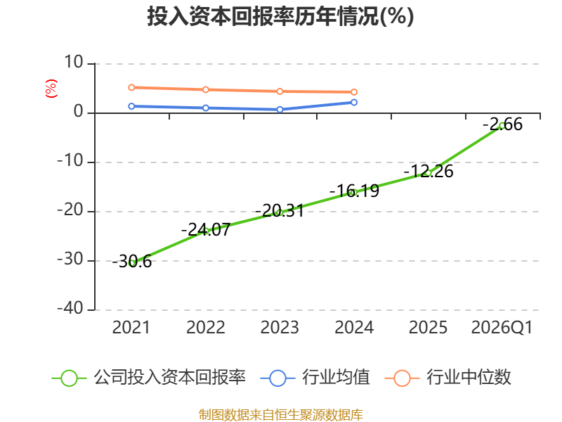 盈利能力方面, 2026年一季度公司加权平均净资产收益率为-2.85%,同比下降0.12个百分点。公司2026年第一季度投入资本回报率为-2.66%,较上年同期上升0.23个百分点。