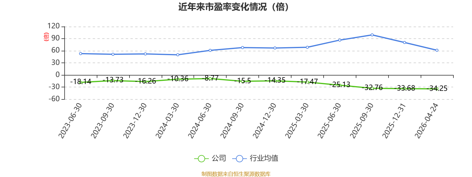 以4月24日收盘价计算,海创药业目前市盈率(TTM)约为-34.25倍,市净率(LF)约4.47倍,市销率(TTM)约99.47倍。