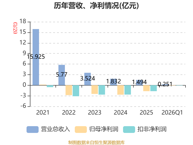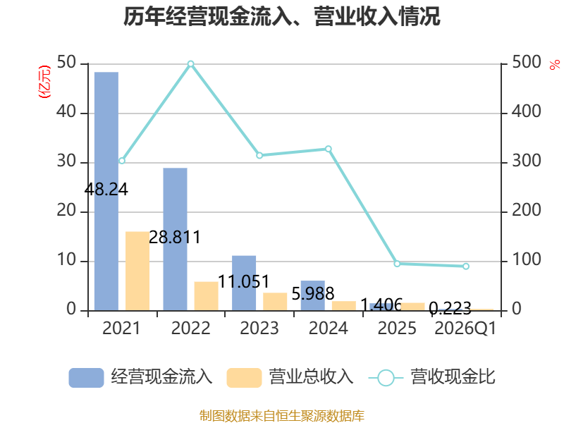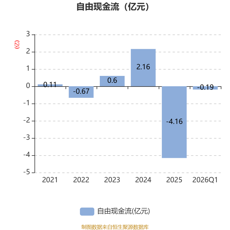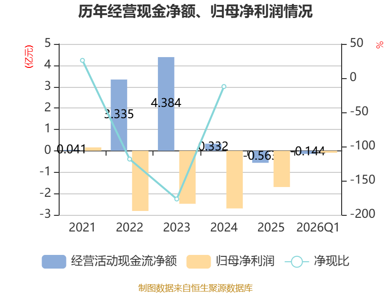 截至2026年一季度末,公司经营活动现金流净额为-1444.75万元,同比增加1080.36万元;筹资活动现金流净额1796.98万元,同比增加9312.68万元;投资活动现金流净额-2.32万元,上年同期为-7.01万元。