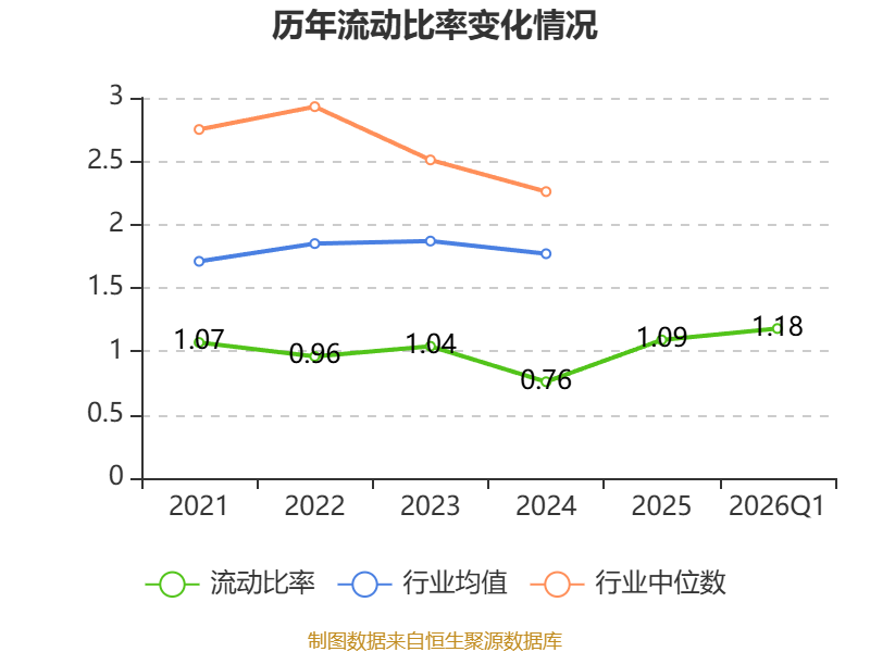 2026年第一季度,公司流动比率为1.18,速动比率为0.82。