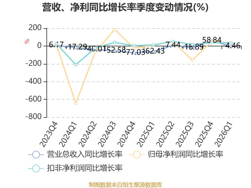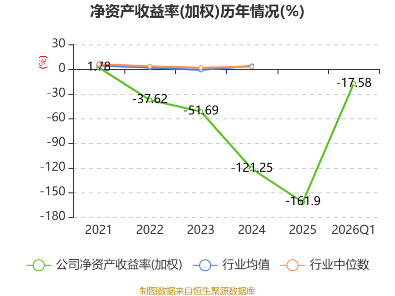 盈利能力方面, 2026年一季度公司加权平均净资产收益率为-17.58%,同比下降6.8个百分点。公司2026年第一季度投入资本回报率为-2.79%,较上年同期上升2.64个百分点。