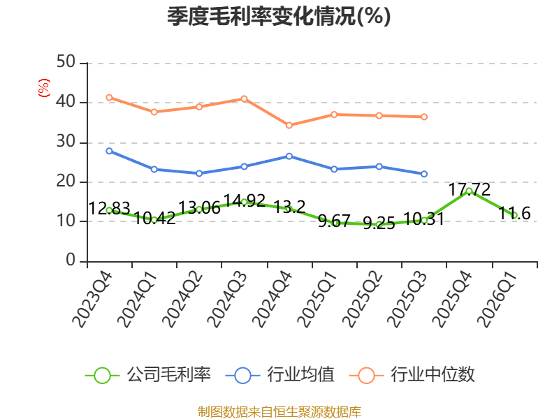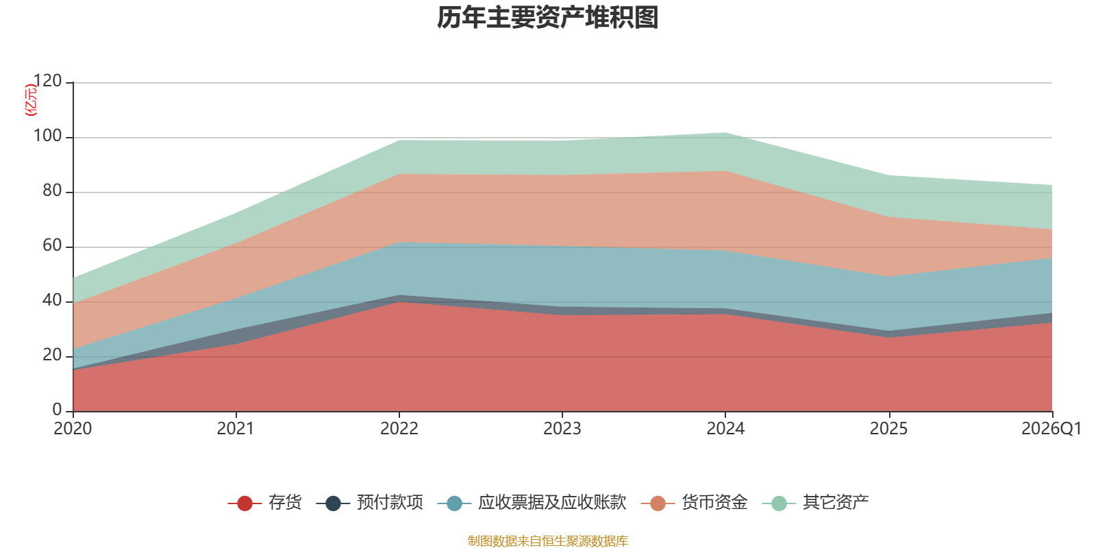 资产重大变化方面,截至2026年一季度末,公司货币资金较上年末减少51.83%,占公司总资产比重下降12.6个百分点;存货较上年末增加20.48%,占公司总资产比重上升7.97个百分点;预付款项较上年末增加42.13%,占公司总资产比重上升1.41个百分点;应收票据及应收账款较上年末增加1.41%,占公司总资产比重上升1.32个百分点。