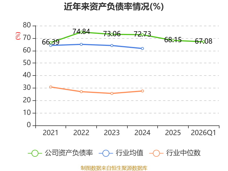 负债重大变化方面,截至2026年一季度末,公司长期借款较上年末增加218.57%,占公司总资产比重上升8.29个百分点;应付票据及应付账款较上年末减少21.56%,占公司总资产比重下降6.64个百分点;应付职工薪酬较上年末减少61.42%,占公司总资产比重下降1.31个百分点;预计负债较上年末减少97.27%,占公司总资产比重下降0.66个百分点。