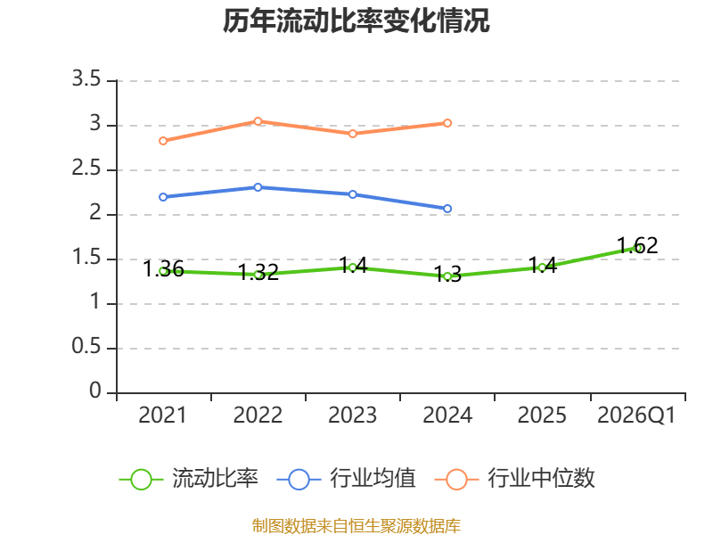 2026年第一季度,公司流动比率为1.62,速动比率为0.91。