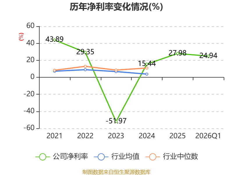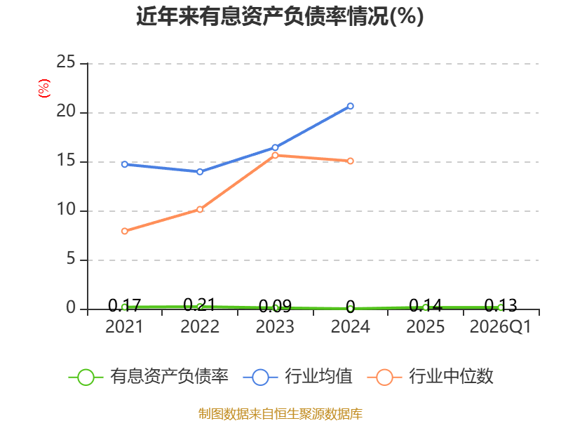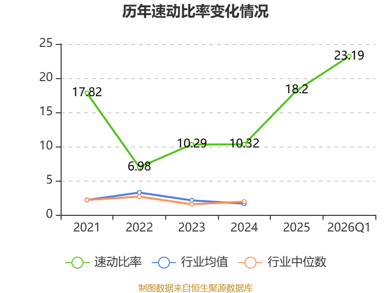 2026年第一季度,公司流动比率为24.99,速动比率为23.19。