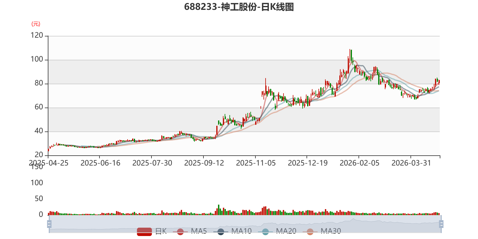 以4月24日收盘价计算,神工股份目前市盈率(TTM)约为142.41倍,市净率(LF)约7.35倍,市销率(TTM)约31.68倍。